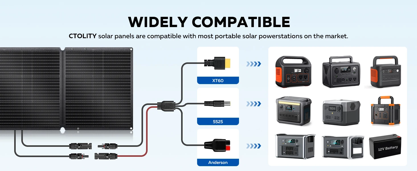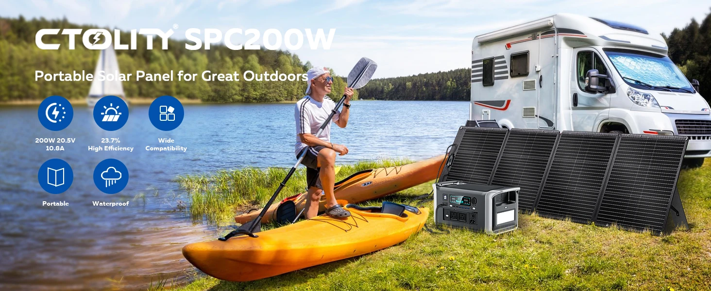 CTOLITY SPC200 ETFE Flexible Solar Panel Camping 200W Portable Folding Solar Panel Charger 23.7% Efficience Travel&Phone&Boat&RV